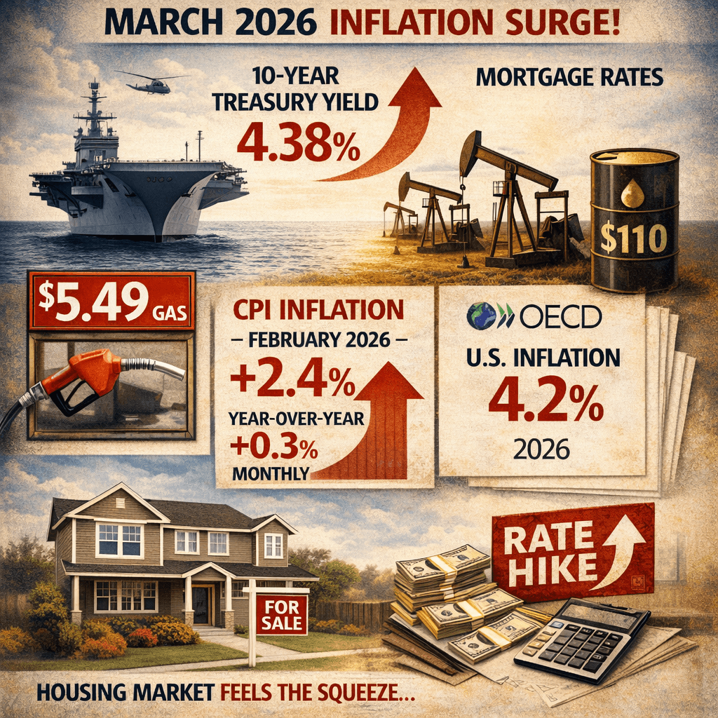 Let’s start with the “why.” Mortgage rates don’t move in a vacuum. They closely track the 10-year U.S. Treasury yield, which investors adjust in response to inflation expectations and global risks. In late February and throughout March 2026, the escalation in the Middle East—particularly disruptions to oil shipments through the Strait of Hormuz—sent energy prices soaring. Oil surged well above $110 per barrel at points, the highest levels since 2022.
